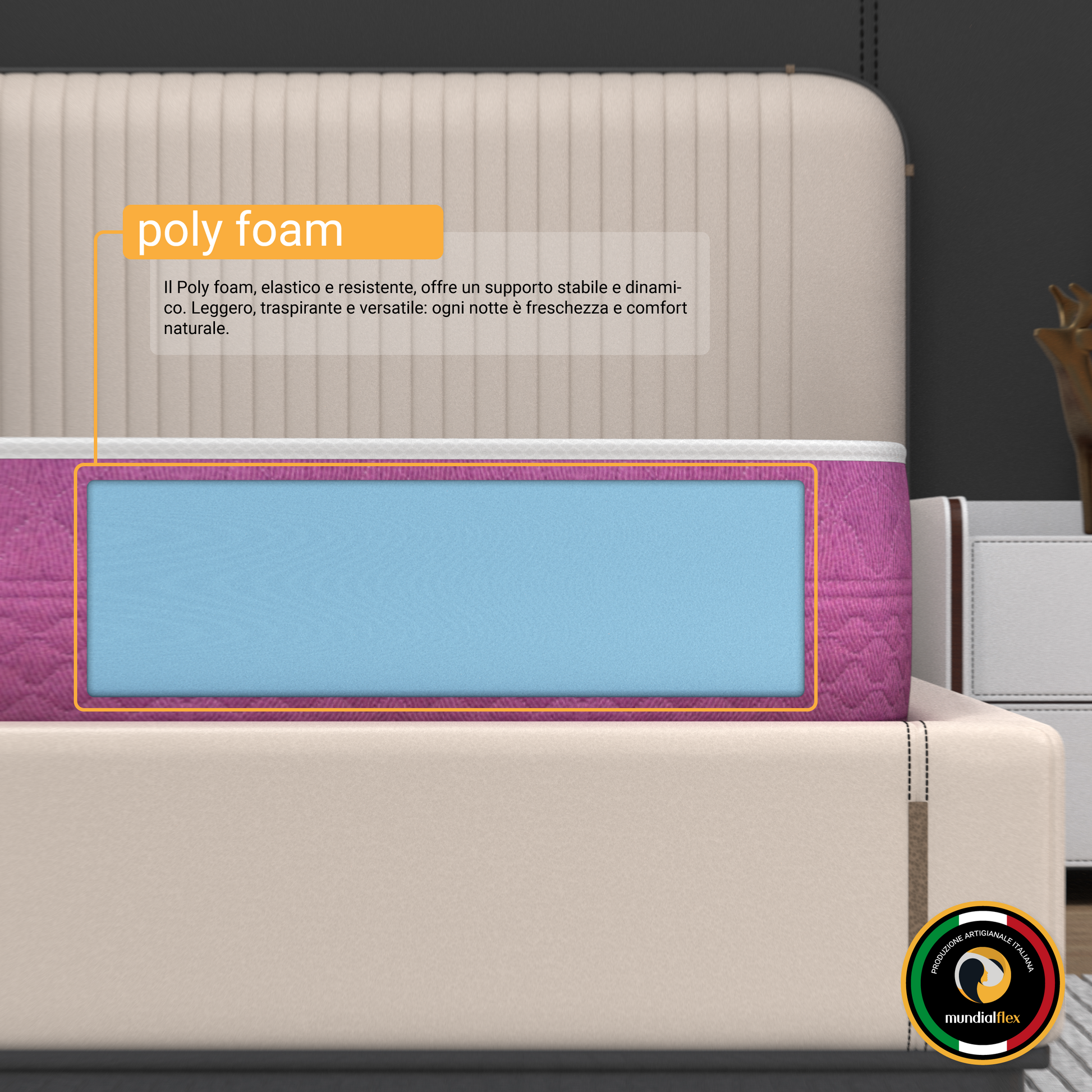 Realizzato in Poly Foam, questo materasso è resistente e durevole, pur rimanendo leggero e facilmente manovrabile. La sua struttura garantisce un buon sostegno per chi dorme, distribuendo uniformemente il peso e migliorando la postura, sia per brevi riposi che per un uso quotidiano.